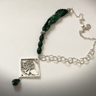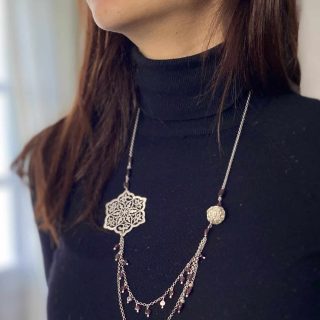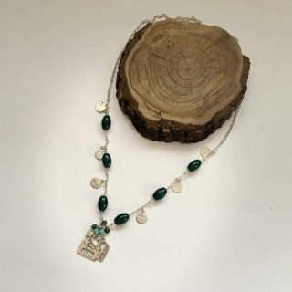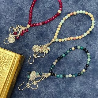 Sebha bracelet with sterling silver charms and semiprecious stones