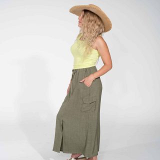 very useful cargo linen khaki green skirt for summer days ..just one available ..