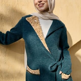 -Dark green soft wool lycra fabric cardigan with touch of Byte material