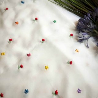 Wrap yourself in the delicate beauty of our FlowerFrost Scarf. This small colorful flowers scarf features vibrant flowers, creating a stunning accessory that will brighten up any outfit.