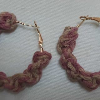 Delicate and feminine, these handmade hoop earrings from Tashuqat feature a beautiful braided design crafted with soft pink and beige fibers. The earthy tones and intricate weave create a versatile accessory that’s both stylish and comfortable to wear. Perfect for casual days or as a subtle statement piece, these earrings add a touch of artisanal charm to your look.