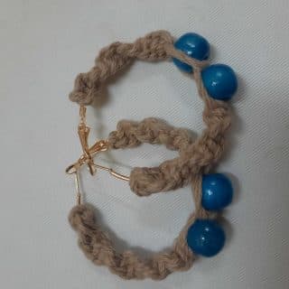 Handmade Braided Hoop Earrings with Blue Beads – Coastal Charm by Tashuqat