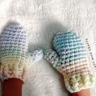 Crochet kids gloves with marshmallow colors 🍭🌸💚