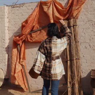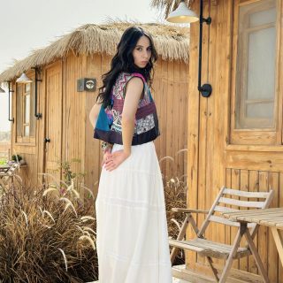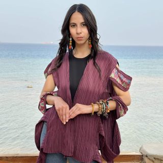 vest has fringes and you can style it with jeans or with our patchwork pants.