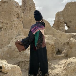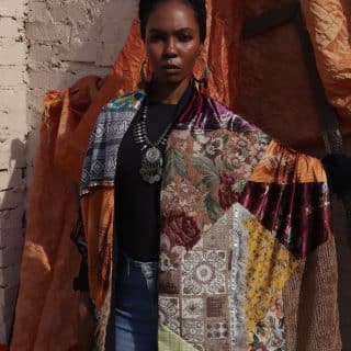 This kaftan is crafted from over 20 different fabrics to give you unique look.