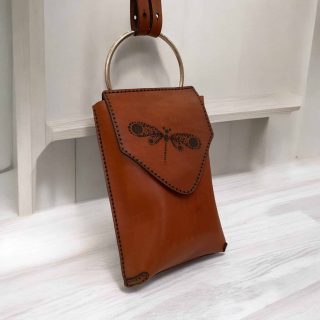 0100 Handmade Genuine leather tote bag with mandala (dark red)