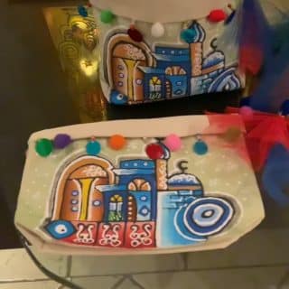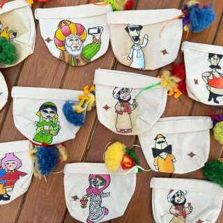 Nuts table bag made out of pure cotton hand painted with beads in 3 sizes S M L