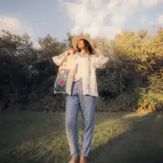 *Order takes from 7 to 10 working days- Available products in photo: Denim patch tote, straw cowboy hat, linen slippers