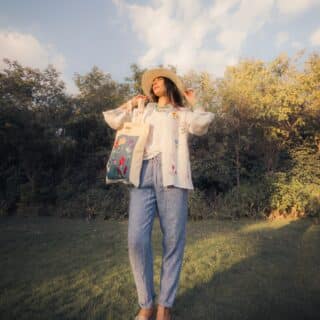 *Order takes from 7 to 10 working days- Available products in photo: Denim patch tote, straw cowboy hat, linen slippers