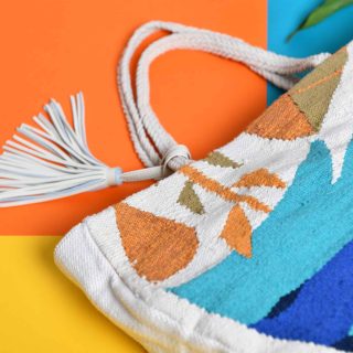 clutch bag with a handcrafted cotton kilim exterior
