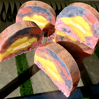 It’s a handmade exfoliating Natural Goatmilk Soap enriched with honey and aloe extract, wrapped and felted with Natural Alpaca Fibers.