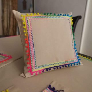 Handmade carpet cushions with Kofi Design available with Blue color only .