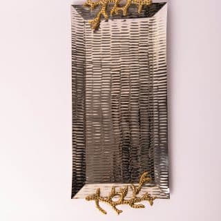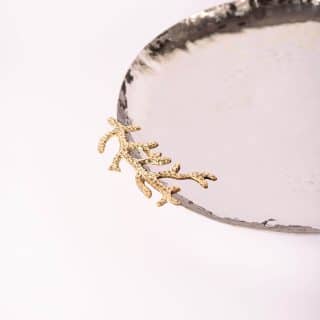- Stainless steel serving salad set with a handmade faux stone, made of epoxy resin & surrounded with gold leaves.