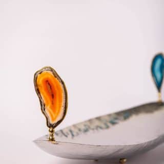 Oval stainless handmade plate with agate stone or handmade copper accessories