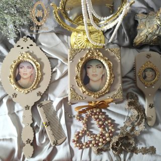 - Royal victorian set consists of : hand mirror , hairbrush , comb and jewelry box