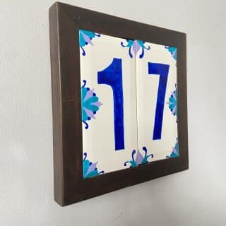 two handpainted tiles, customized, total size of the frame 25×25 cm