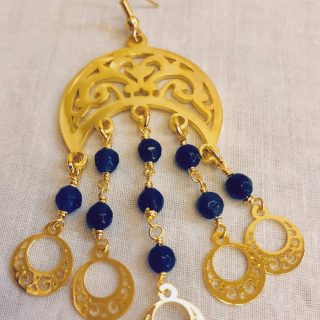 Brass plated with 18K, adorned with navy blue Agat & intricate brass danglings