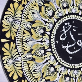 - Transform your space with these set of 2 beautiful Mandala Dot Paintings with arabic calligraphy “رب اشرح لي صدري ويسرلي أمري “, hand-painted on wood. These pieces feature intricate mandala designs in calming greys, yellow, and white hues.