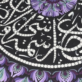 Mandala dots hand painted painting with arabic calligraphy word “موده”