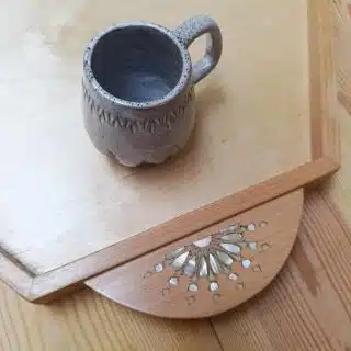 الوصف : صينية للمجات خشب زان و كونتر، رسم و تلوين يدوي، بسور و 2 يد .