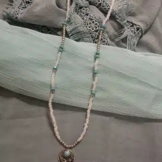 Simple necklace with turquoise stone pendant and mix of white and silver beads