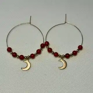 Stainless steel earrings with agate pearls and half moon