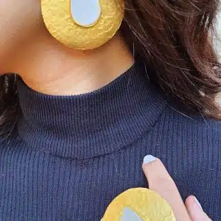 Handmade copper earring and ring plated with gold 18k with seashells stones