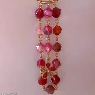 Bag charms made of fuchsia agate stones and hanged a plated fuchsia pendant in the shape of a flower