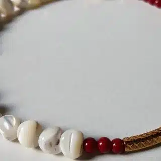 Anklet made of burgundy alabaster and seashell with a gold plated accessory