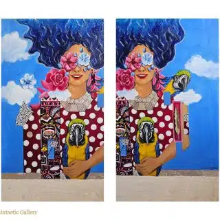 The ‘Curly Head 24’ painting is the latest version made with special materials mixed together with unique patterns to reflect positivity, cheerfulness and summer vibes.Modern decorative abstract painting.