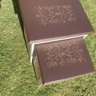 This set is ideal for a guest bathroom just a box 28×12 with printed towels with the same pattern to match the dispenser