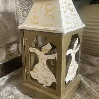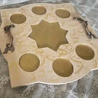 Wooden Ramadan Tray for Arabic Coffee calligraphy design, saumon color x gold