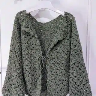 Soft and stylish, this hand-crocheted cardigan is perfect for any occasion