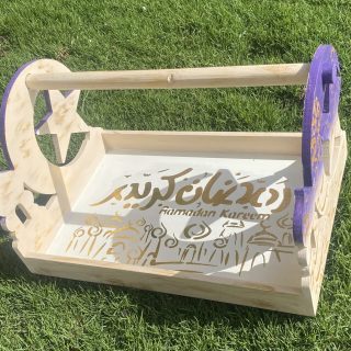Wooden Ramadan Tray for Arabic Coffee calligraphy design, saumon color x gold