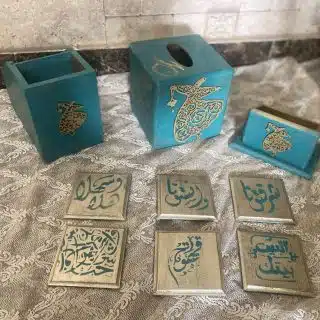 Wooden Set Tissue box, remote holder & coasters calligraphy and dervish theme