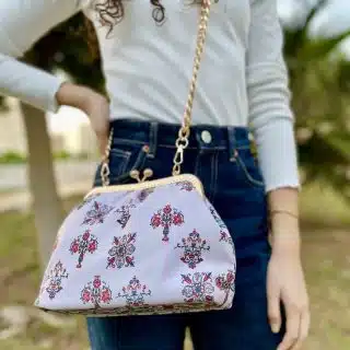 Sea Shells clutch with golden beads and a leather back L 15 * W 29 cm