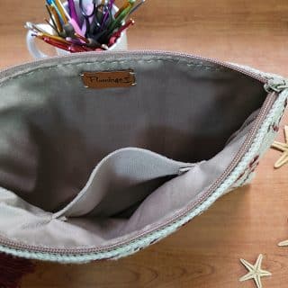 - Handmade café macrame clutch. Has an inner coating, beige zipper & varieties of nude decorations.