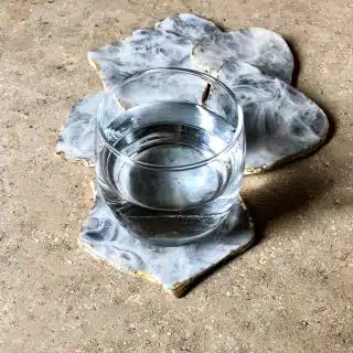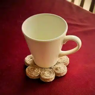 A hand-burned wooden mug coaster tree slice to decorate your table or stand on your desk.