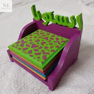 Wooden set of tissue box and coasters in turquoise color and summer theme