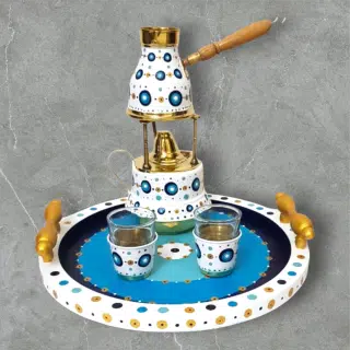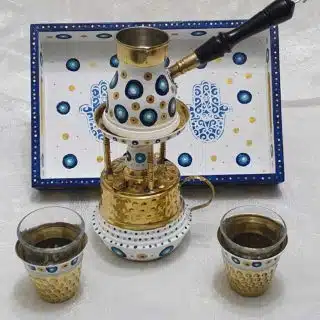 Hand Painted Copper Coffee Set طقم القهوة النحاس مع الصينية
