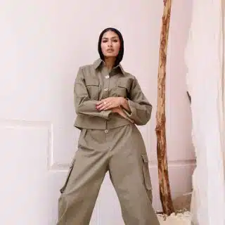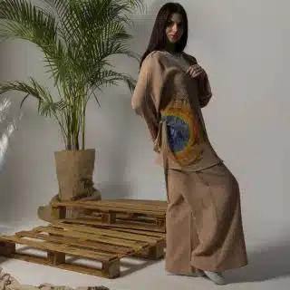 Beige fleece set for winter, comfortable and fashionable, hand draw
