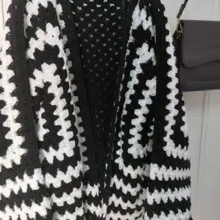 Soft and stylish, this hand-crocheted cardigan is perfect for any occasion