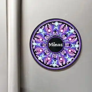 Hand painted fridge magnet with mandala dots technique. Customized specially for you with your choice of name in arabic or English.