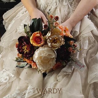 Peach burgundy bridal bouquet