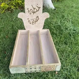 Wooden kaf design tray organizer can be used for cutlery or for serving nuts & cookies
