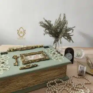 A perfect blend of antique gold leaf patina ornaments and Teresa’s green colorMaterial : MDF wood
