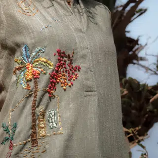 - Cotton linen summer dress hand-embroidered with Egyptian inspired patterns