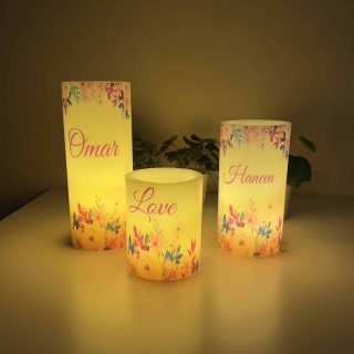 3 Colorful Flowers Candle Set, Personalized Candles, Flameless Candle