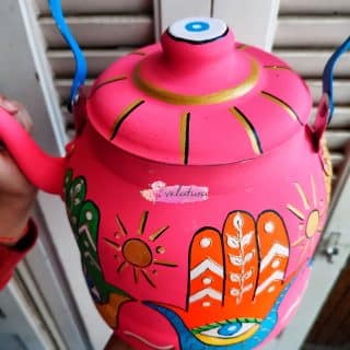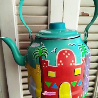 براد شاي الومنيوم مقاس كبير بتصميم القرية النوبية مرسوم يدوي بدقة و عناية