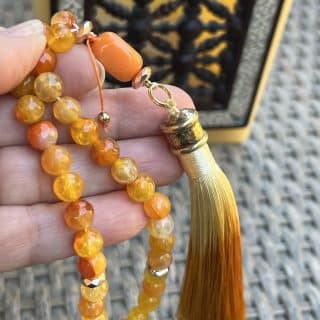 Gorgeous Sebha, Agate orange, 33 beads, semiprecious beads, great gift for Ramadan, tassel prayer beads